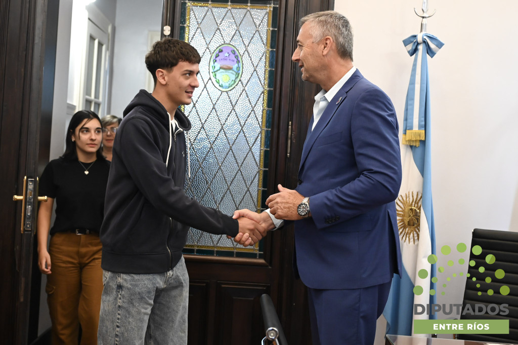 Estudiantes y docentes del Instituto Comercial Privado Almafuerte D-70 de Villa Elisa se reunieron con el presidente de la Cámara de Diputados para exponer su propuesta legislativa que busca declarar la emergencia sanitaria en salud mental en Entre Ríos
